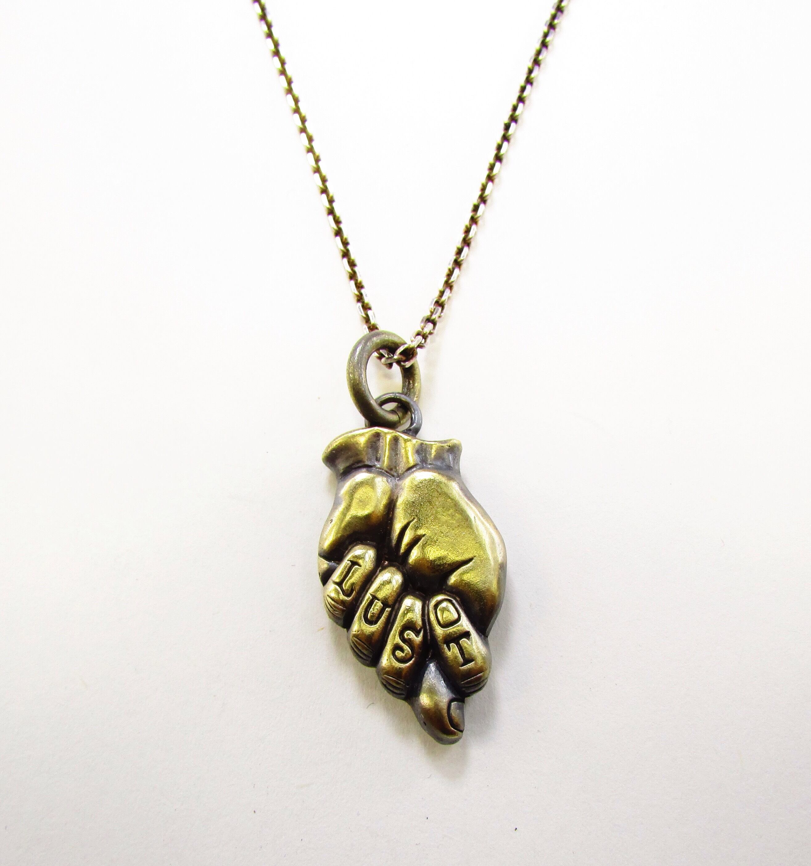 SEXや女性器を意味するハンドサインと女性の尻をモチーフに製作。各面にはそれぞれ、七つの大罪の中で色欲を表す”LUST”と嫉妬を表す”ENVY”という言葉が刻まれています。