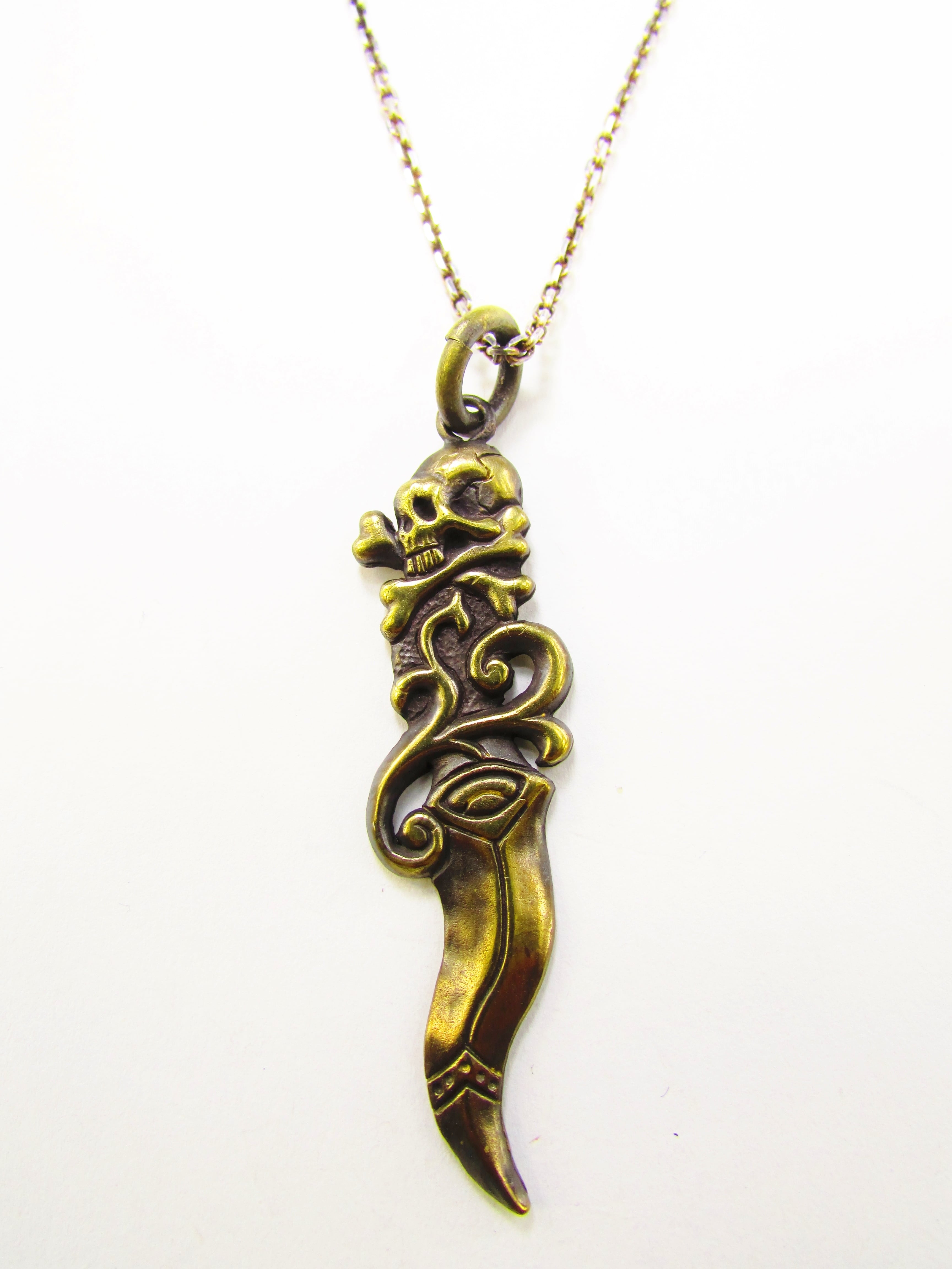 短剣モチーフに剣先を見つめる目とSkull&bonesを組み合わせて製作。