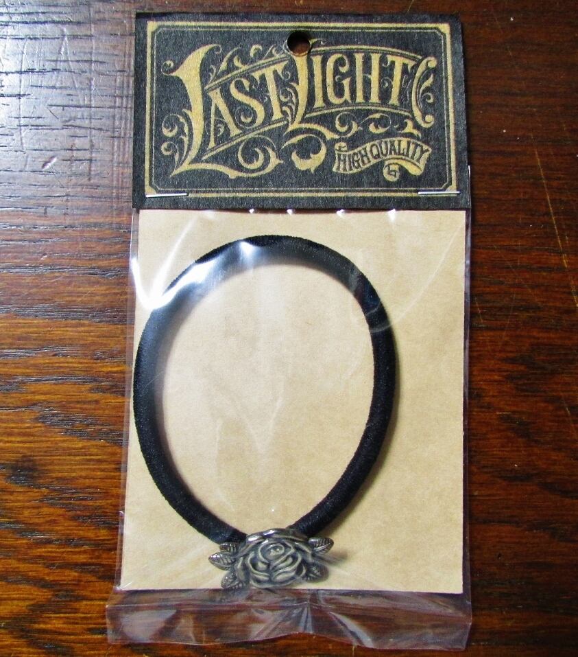 バラのデザインの真鍮製チャームが付いたヘアゴム。