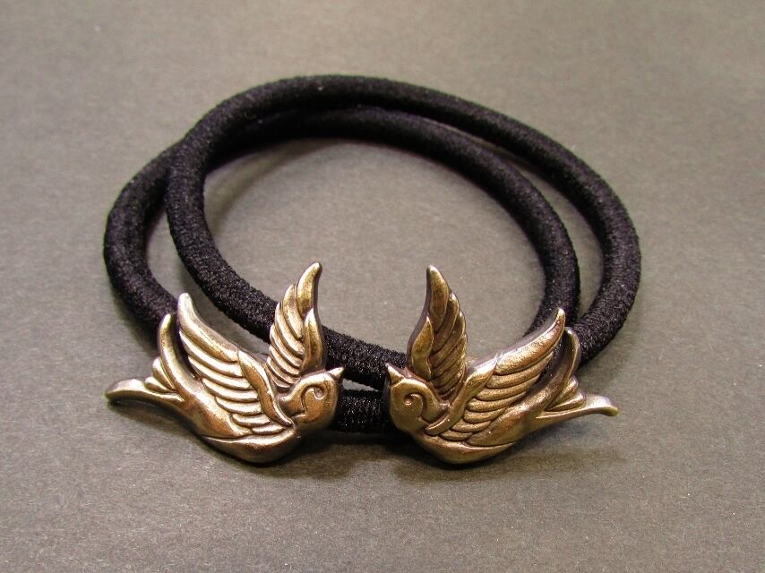 スワローデザインの真鍮製チャームが付いたヘアゴム。